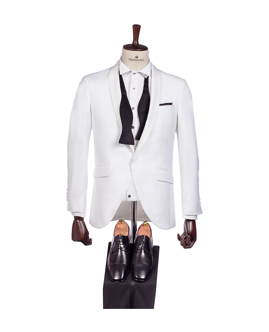 Smoking blanco perfecto para cualquier ocasión especial como bodas, ceremonias o celebraciones especiales.