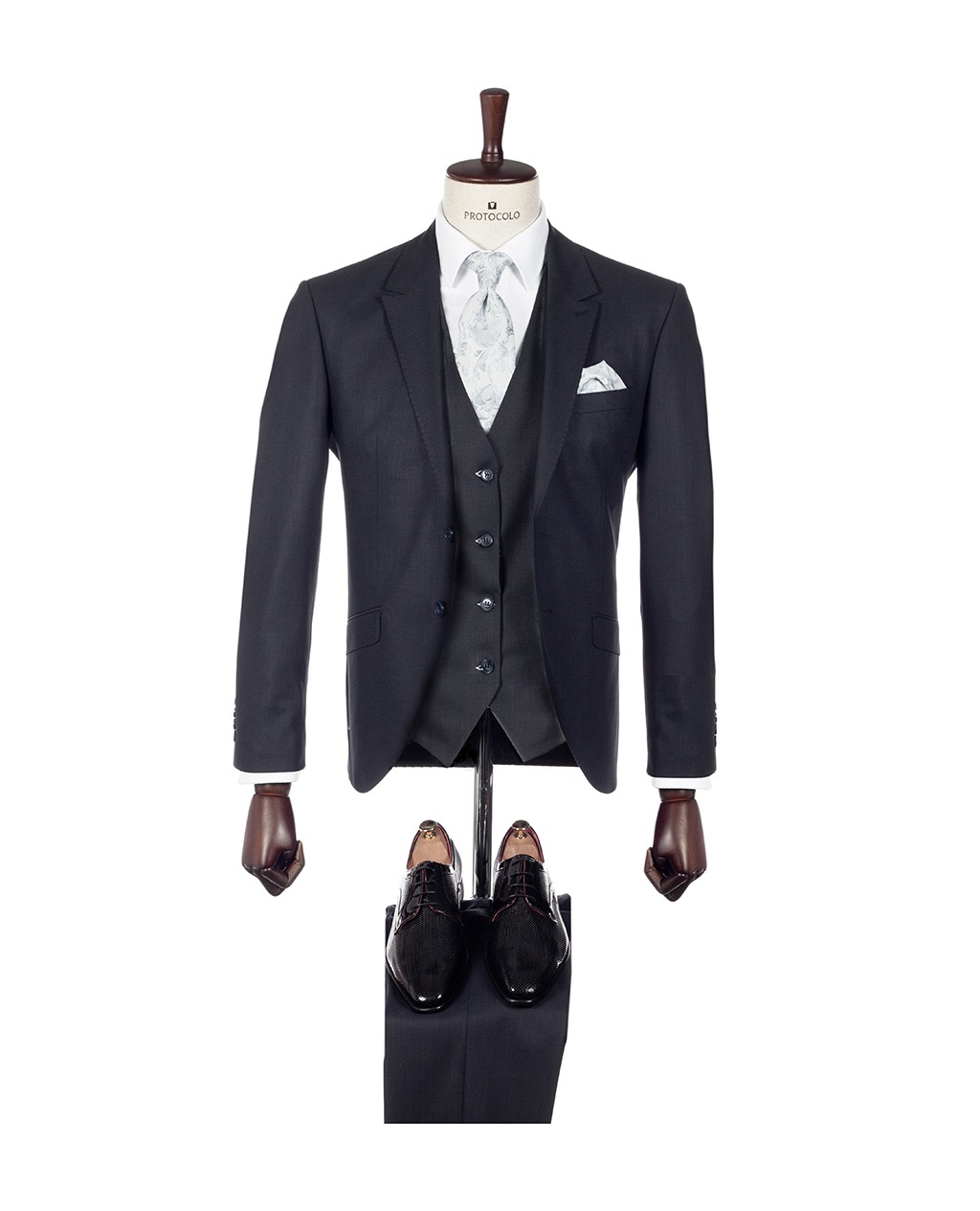 Este traje de corte Slim de la exclusiva colección de Protocolo está pensado para un novio sobrio y elegante.